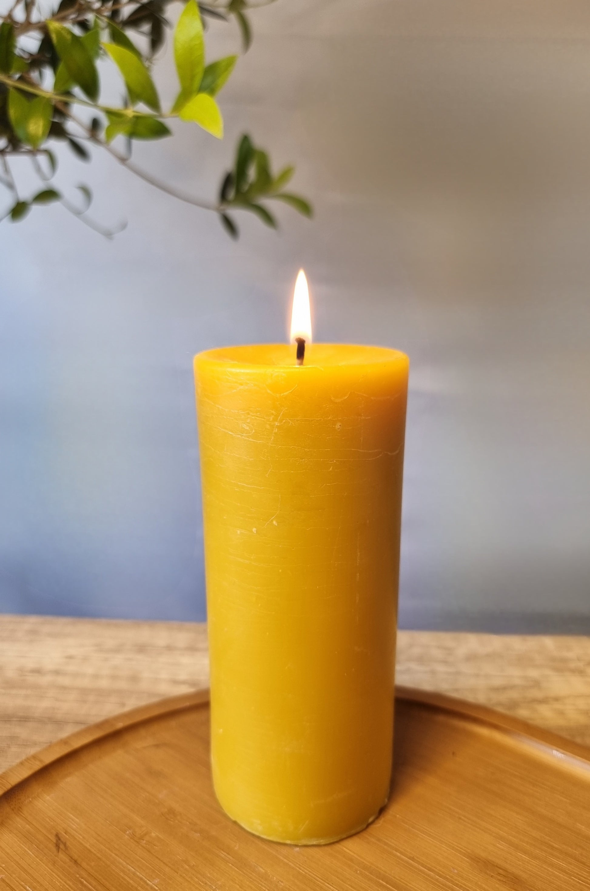 Experience the warm and subtle glow of our handcrafted beeswax pillar candle. Made from pure beeswax, this candle burns longer and cleaner than traditional wax candles, while also offering air purifying benefits. Illuminate your space with a natural and eco-friendly option.