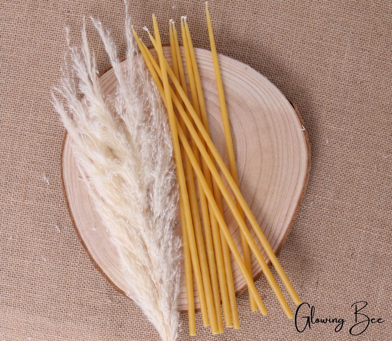 All candles are 100% natural beeswax with no additives or toxins and are made with accredited natural colouring. Therefore, yellow candle tone can vary depending on the season.